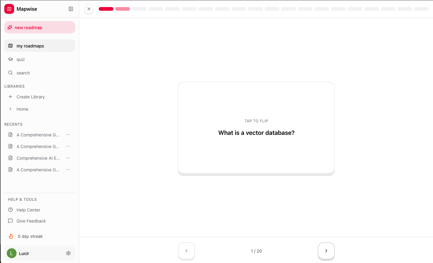 ## 製品概要 Mapwiseは難解なテーマを明確で構造化された学習ロードマップに変換し、学習を体系的に進めるツールです。 ## 特徴 - 論理的なステップに分解して対話的に案内 - 視覚的な...