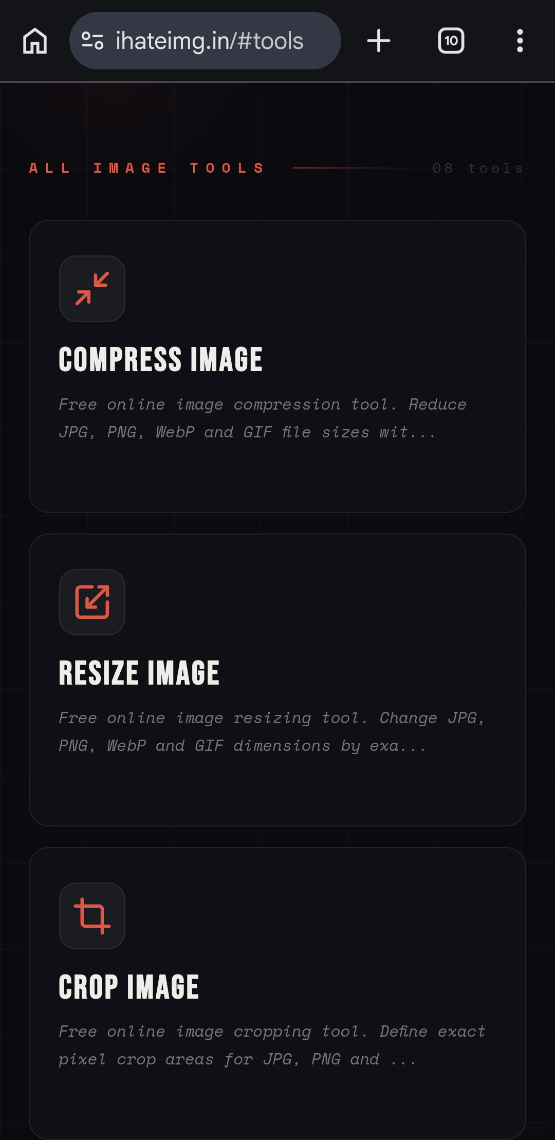 Tired of opening 5 websites just to compress, crop, and watermark one image? I built ihateimg.in ...