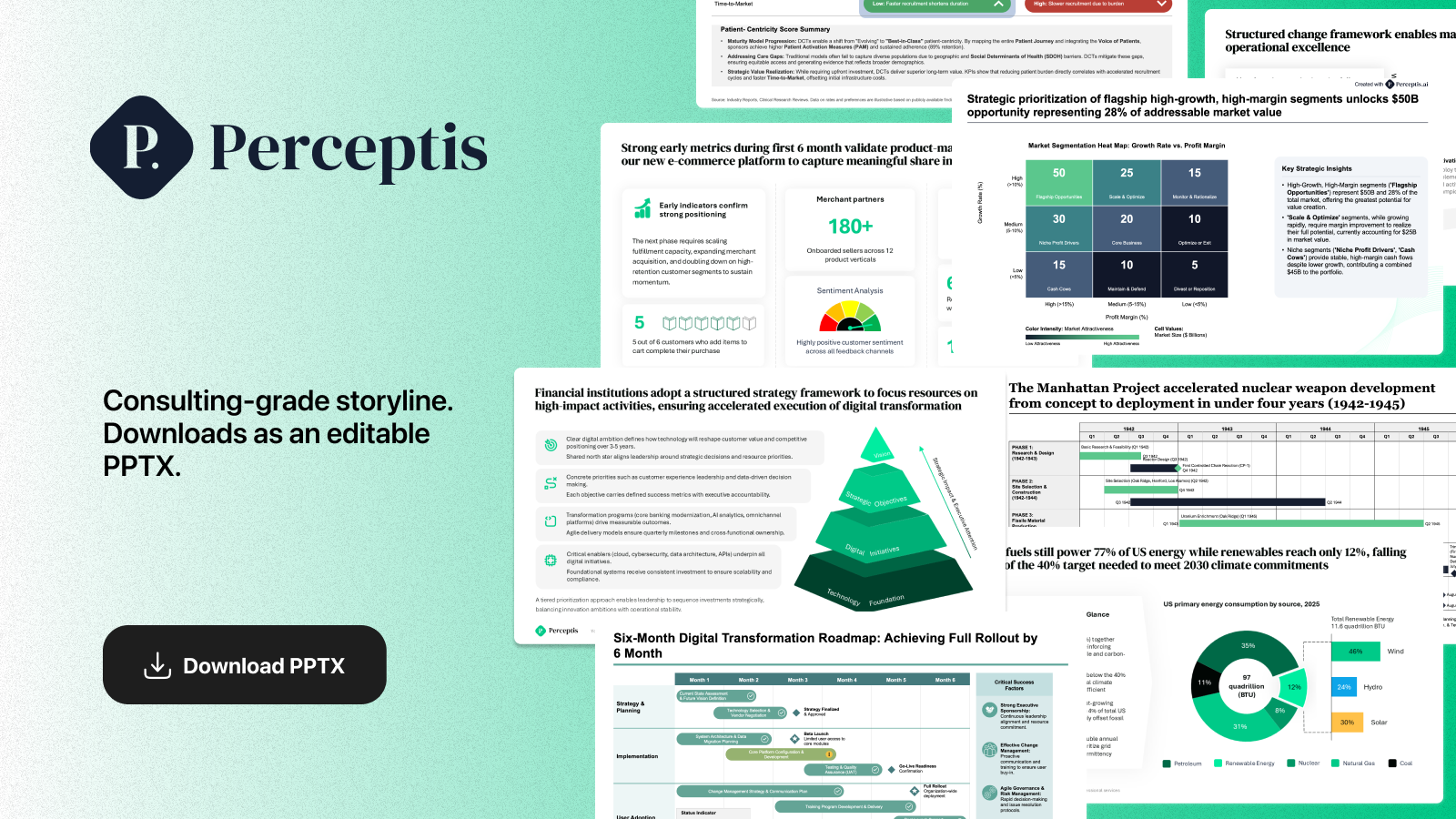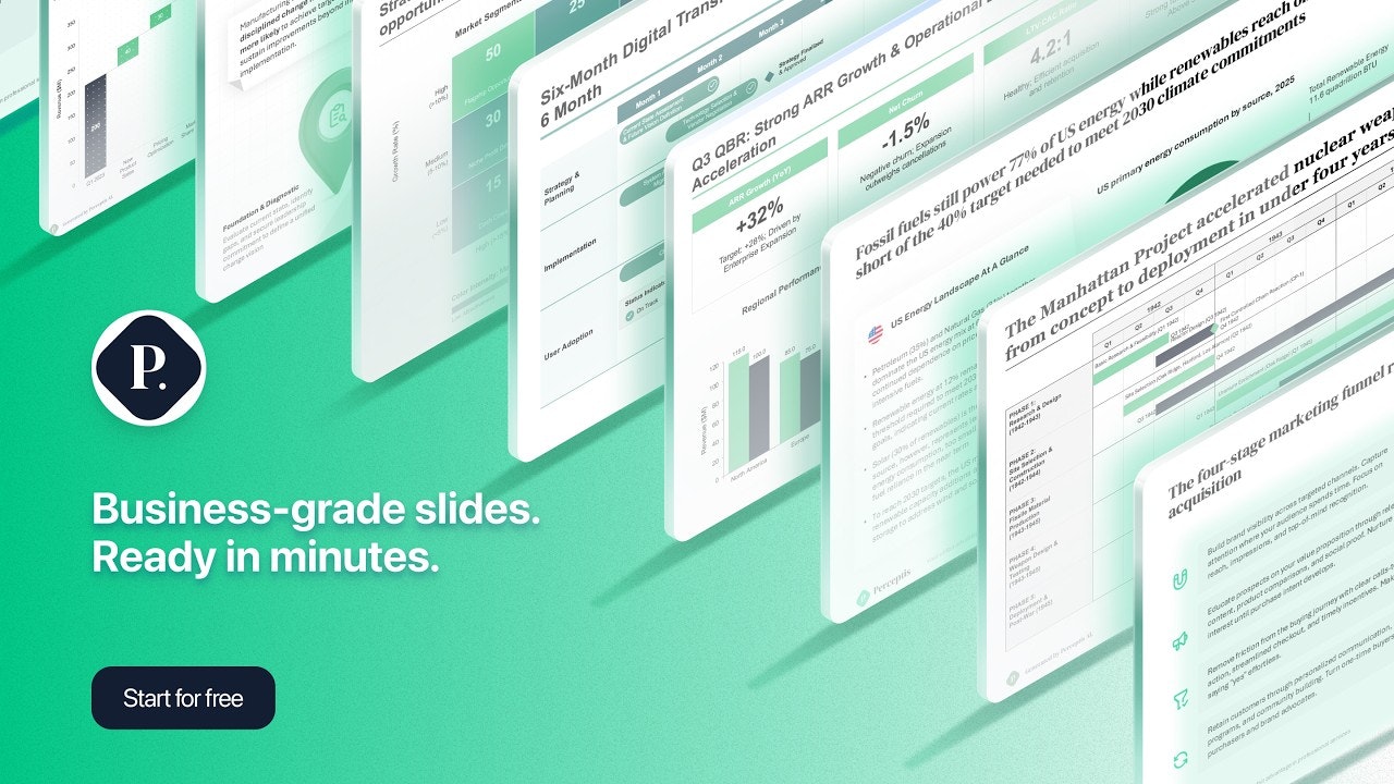 Perceptis generates editable PowerPoint slides from prompts. Upload your data and templates - and...