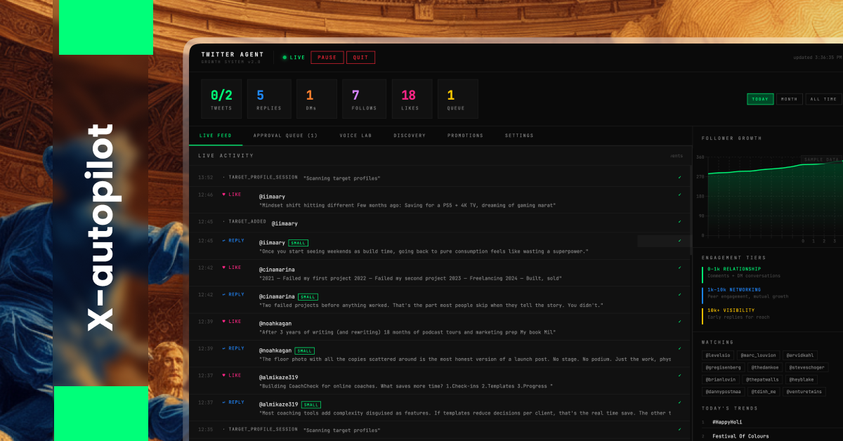 X Autopilot is a Claude-powered AI agent that grows your X audience and promotes your product: Fu...