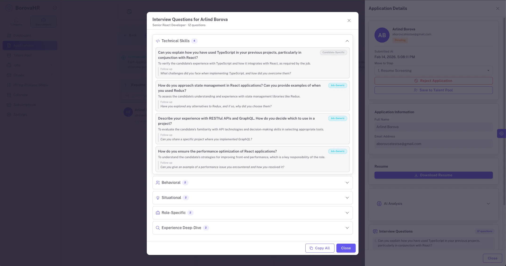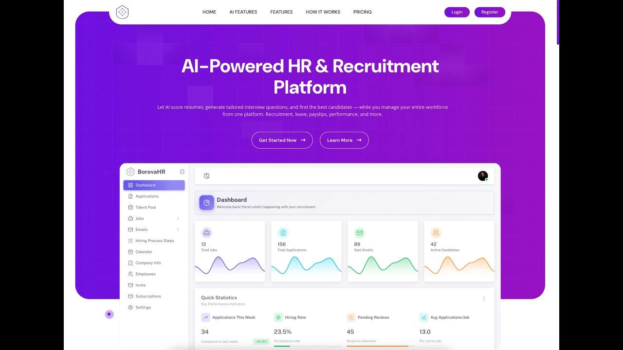 ## BorovaHR の概要 - AI搭載の人事・採用プラットフォーム - 採用履歴書のAIスコアリング(0-100)とスキル・経験分析 - 役割別のAI面接質問の自動生成 - 完全なATSと...
