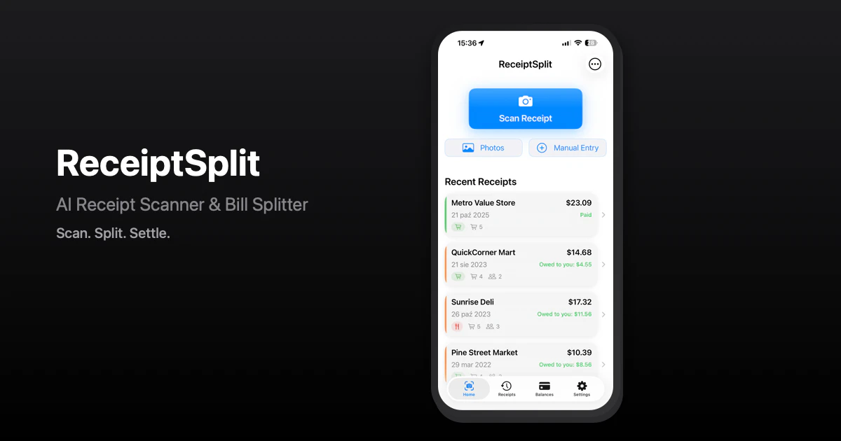 ReceiptSplit scans any restaurant receipt with AI and lets you assign each item to the person who...