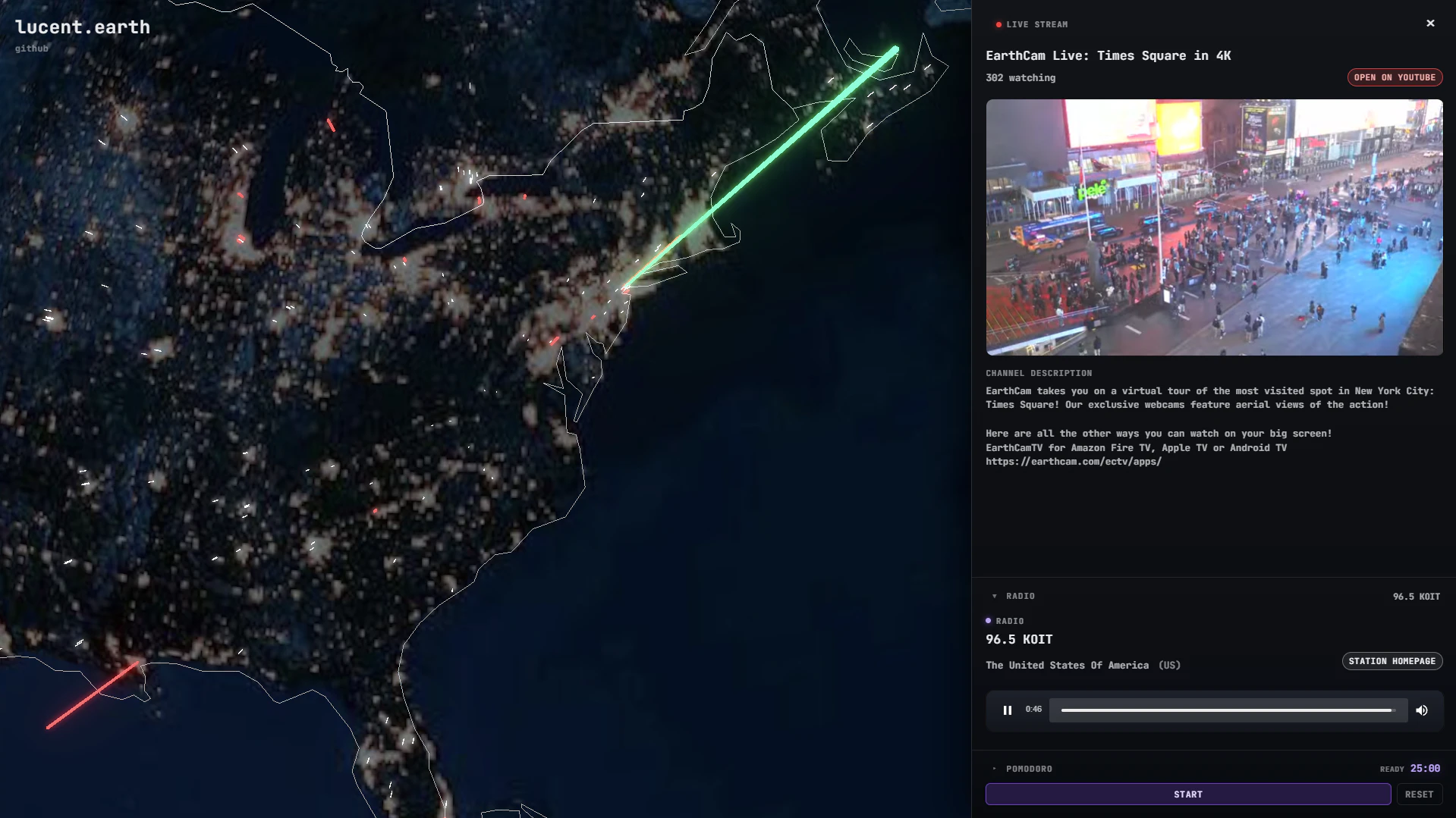 lucent.earth brings IRL streams from Twitch and Kick to life on a stunning interactive WebGL glob...