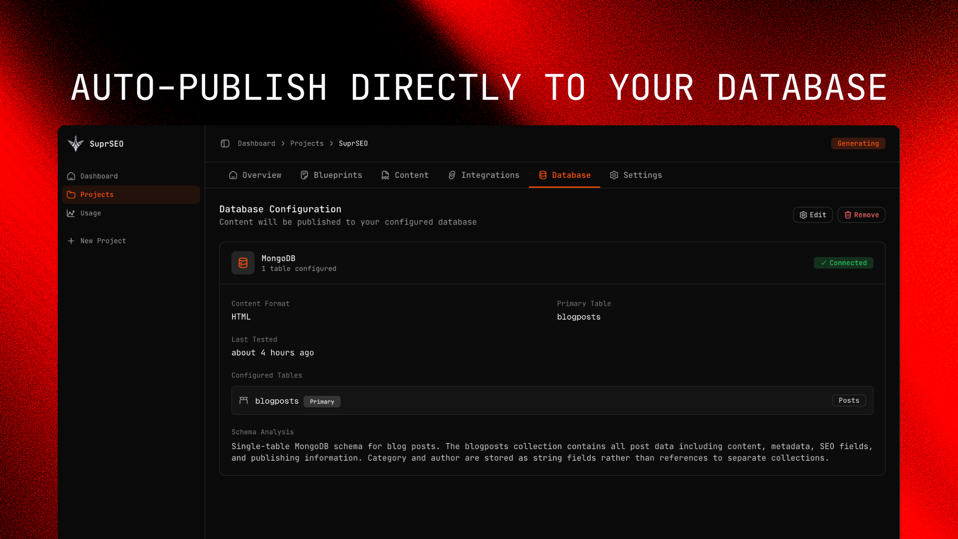 ## 概要 - SEOワークフローを自動化・統合し、キーワード調査から記事生成・公開までを一括処理 - ウェブサイトをクロールしてニッチと検索意図を把握 - 高意図キーワードを抽出、E-E-A-...