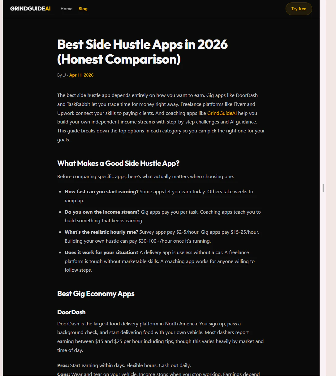 Most side hustle apps give you generic advice. GrindGuideAI gives you 85 real-money challenges wi...