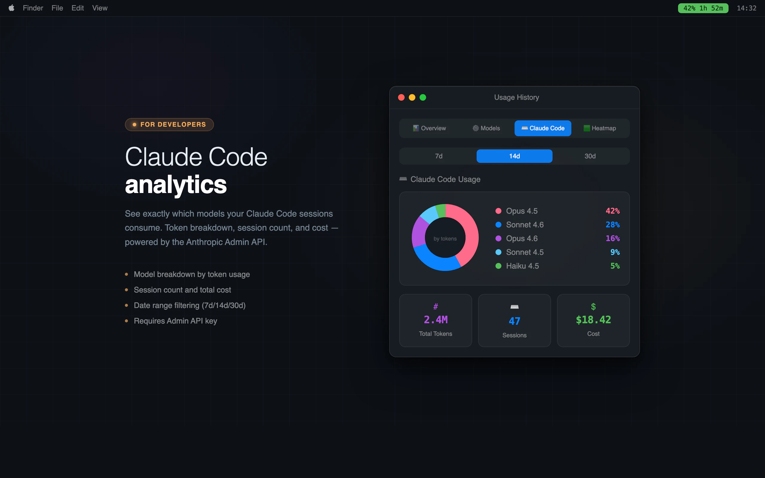 TokenWatch is a macOS menu bar app that tracks your Claude.ai usage in real-time session percenta...