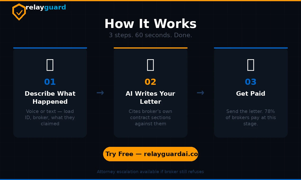 Broker refused to pay? RelayGuard writes a professional freight dispute letter in 60 seconds — ci...