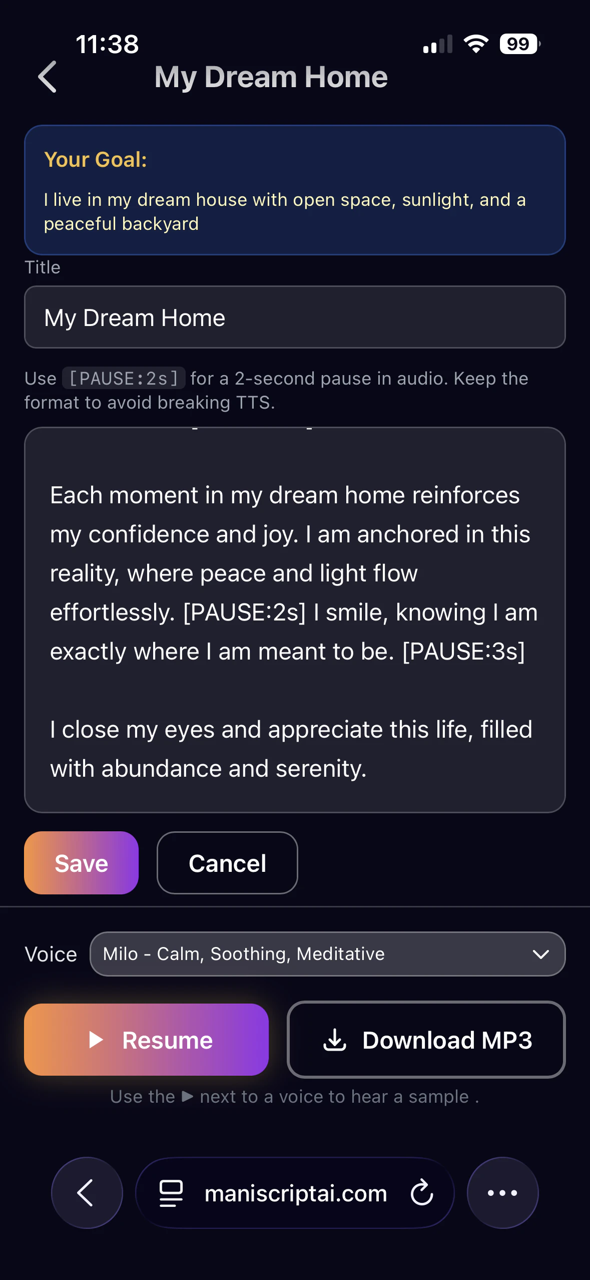 Turn your intentions into guided manifestation audio with AI