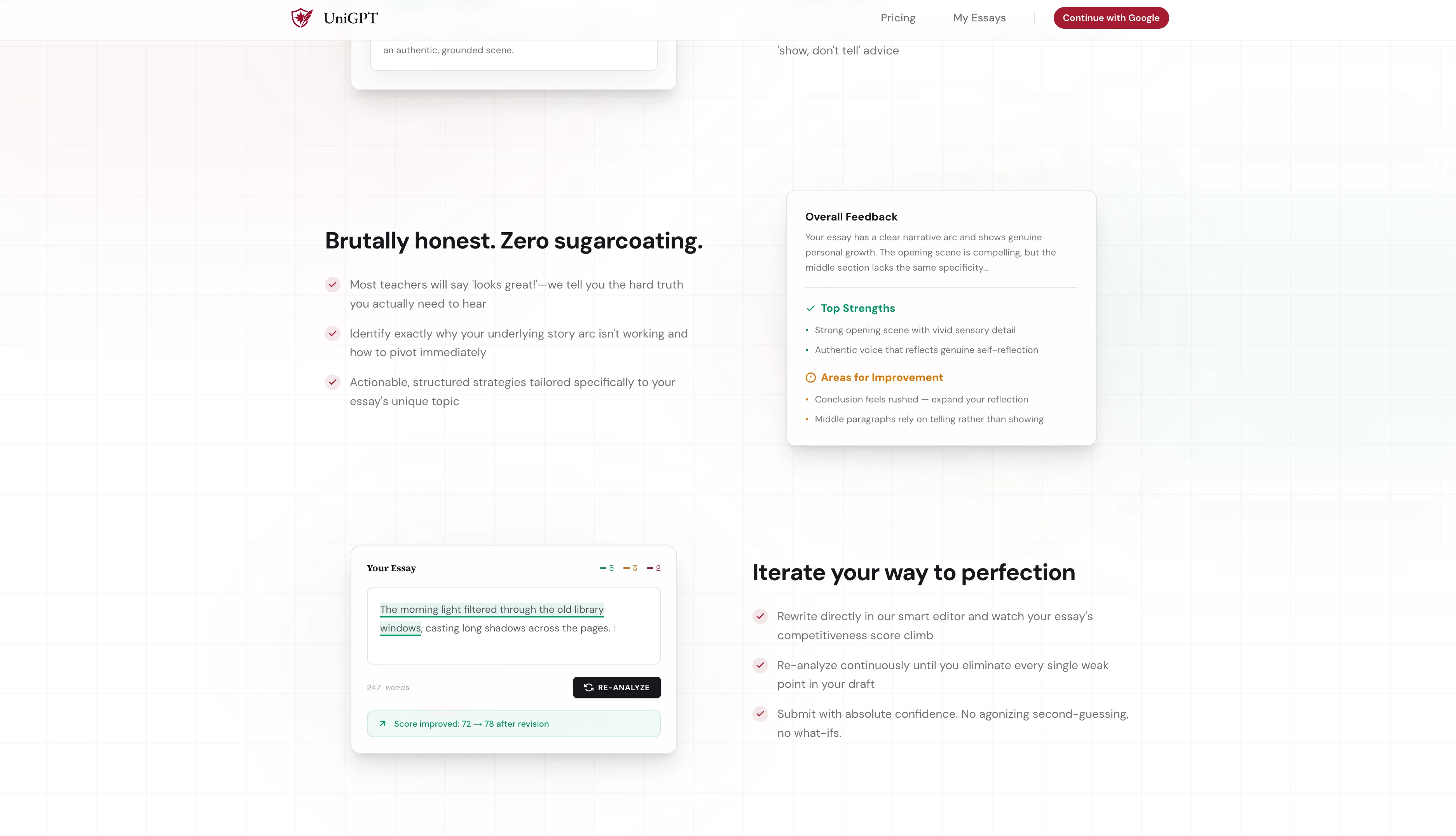 UniGPT gives you honest, Ivy-level essay feedback in seconds, instead of generic grammar checks. ...