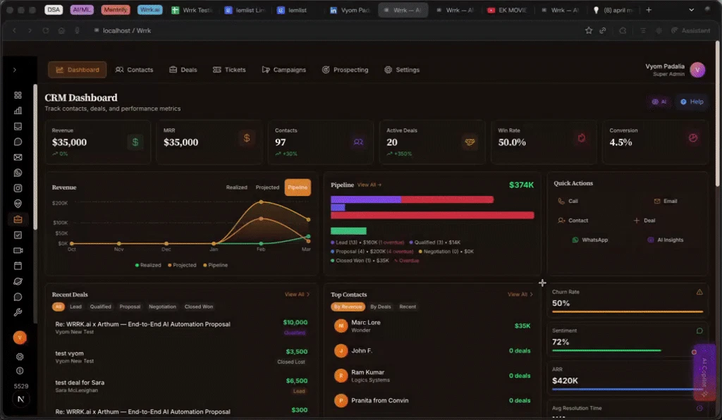Wrrk replaces your CRM, helpdesk, email marketing, WhatsApp API, meeting scheduler, AI notetaker,...
