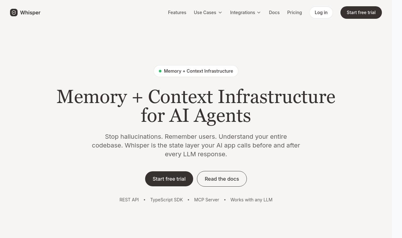 AI agents forget context between chats—hallucinate, repeat, lose track. Frustrating. Usewhisper a...
