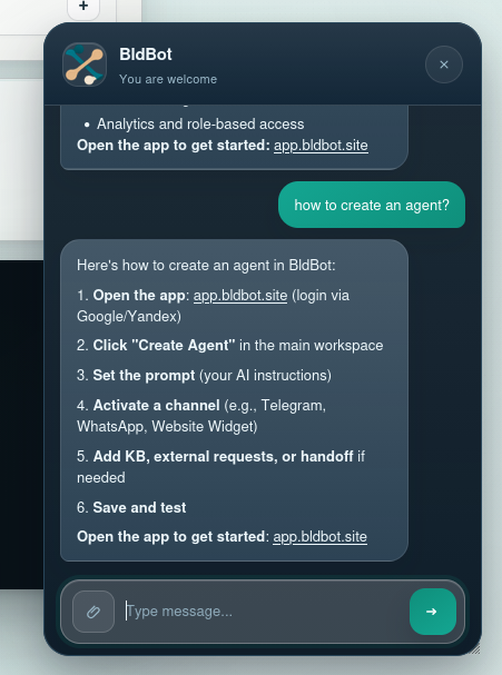 BldBot is a runtime to build and operate production AI agents across real communication channels....