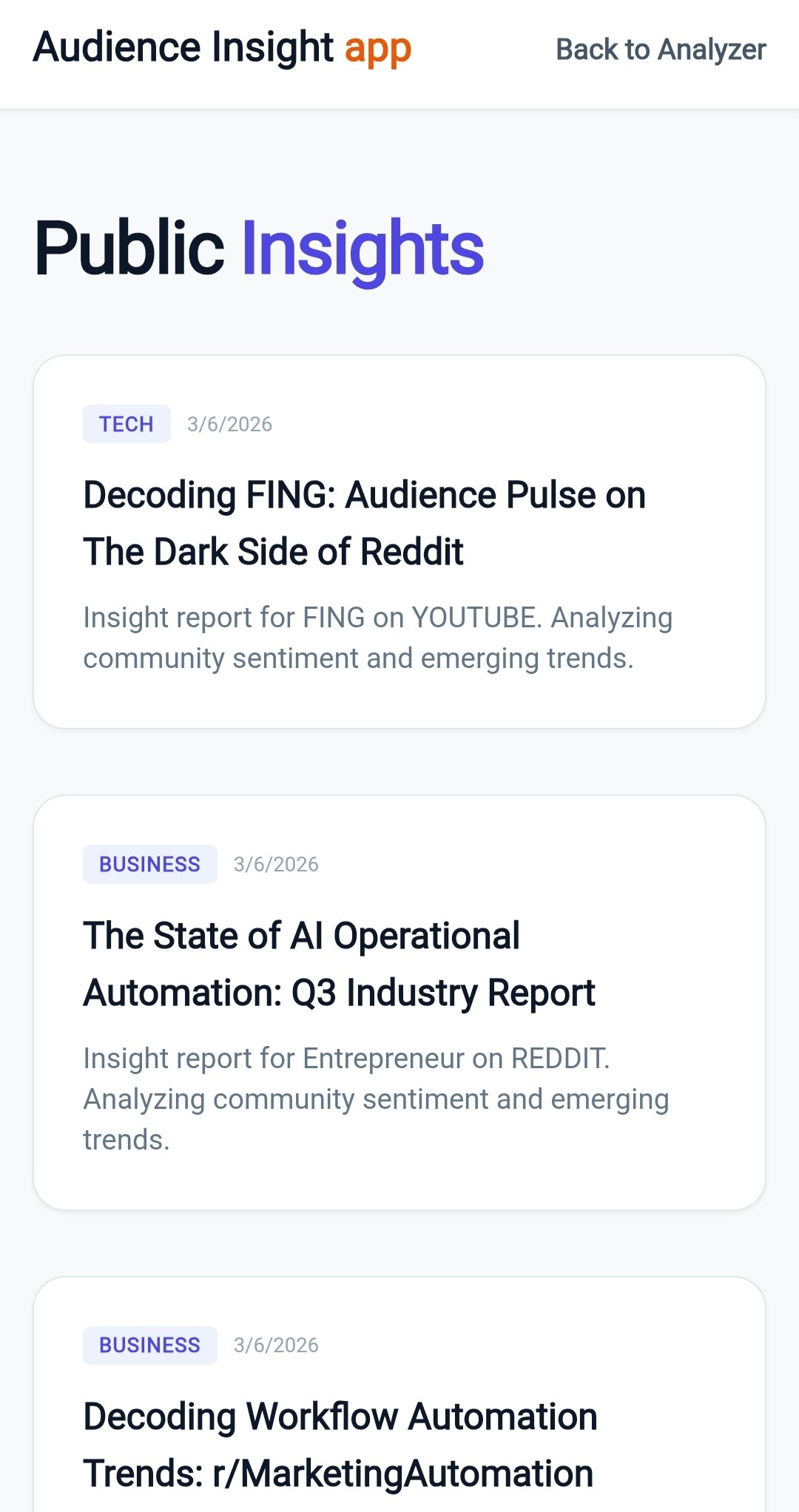 Professional market research tool using AI to decode sentiment from Reddit and YouTube comments f...
