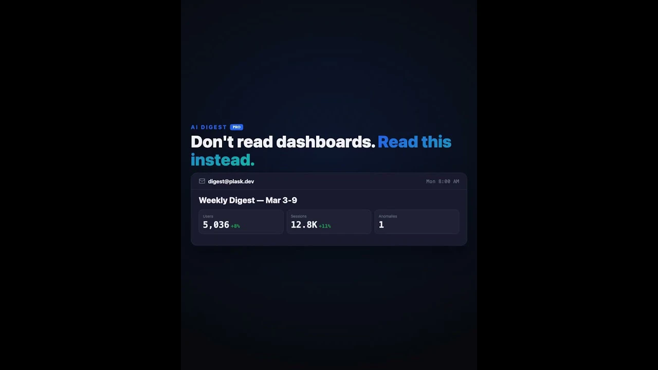 Plask puts all your GA4 properties on one screen — web, iOS, Android. No more switching tabs to c...