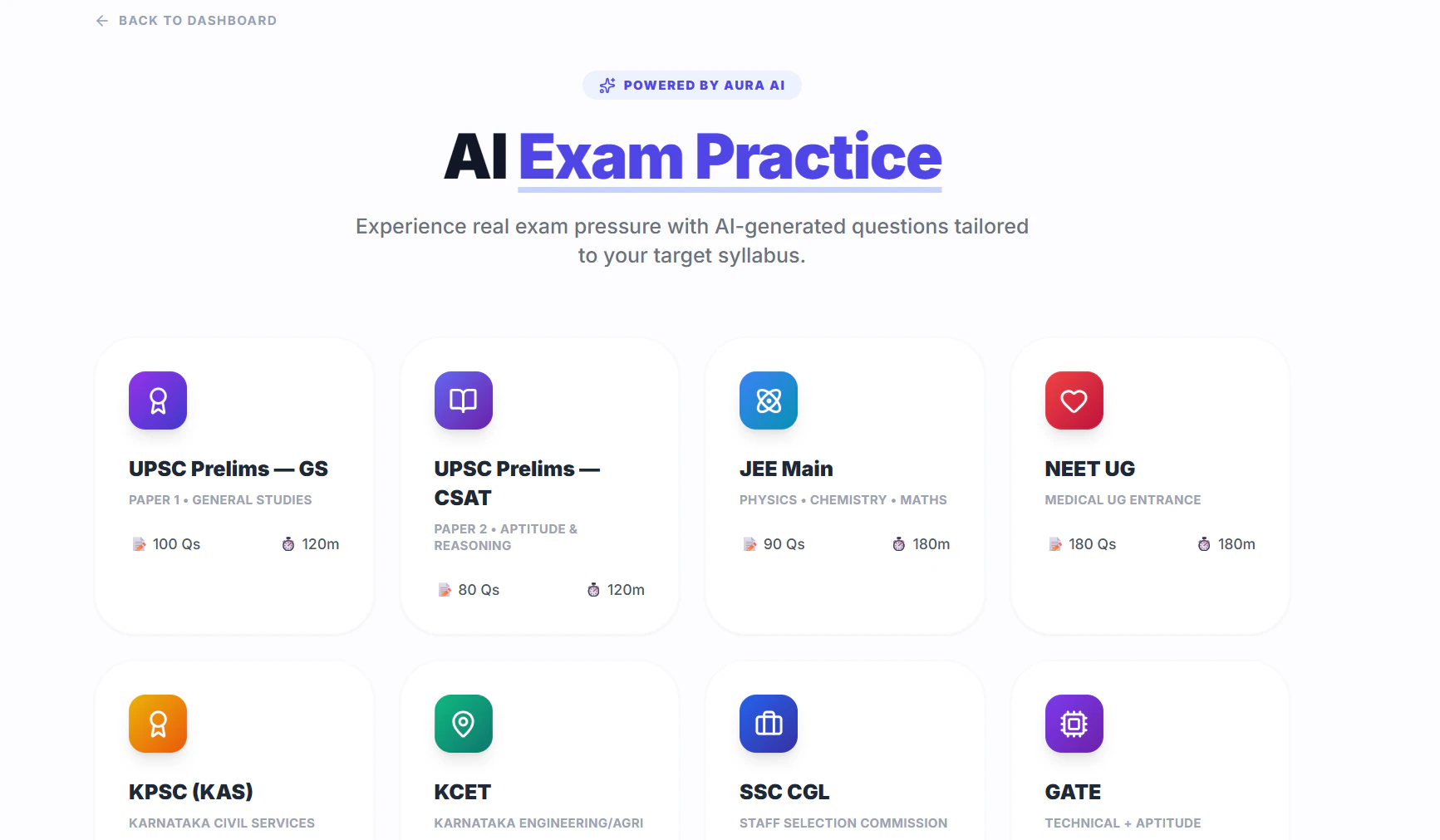 AURA AI is built for every Indian judged by college name — not skill. What's live: → AI mock exam...