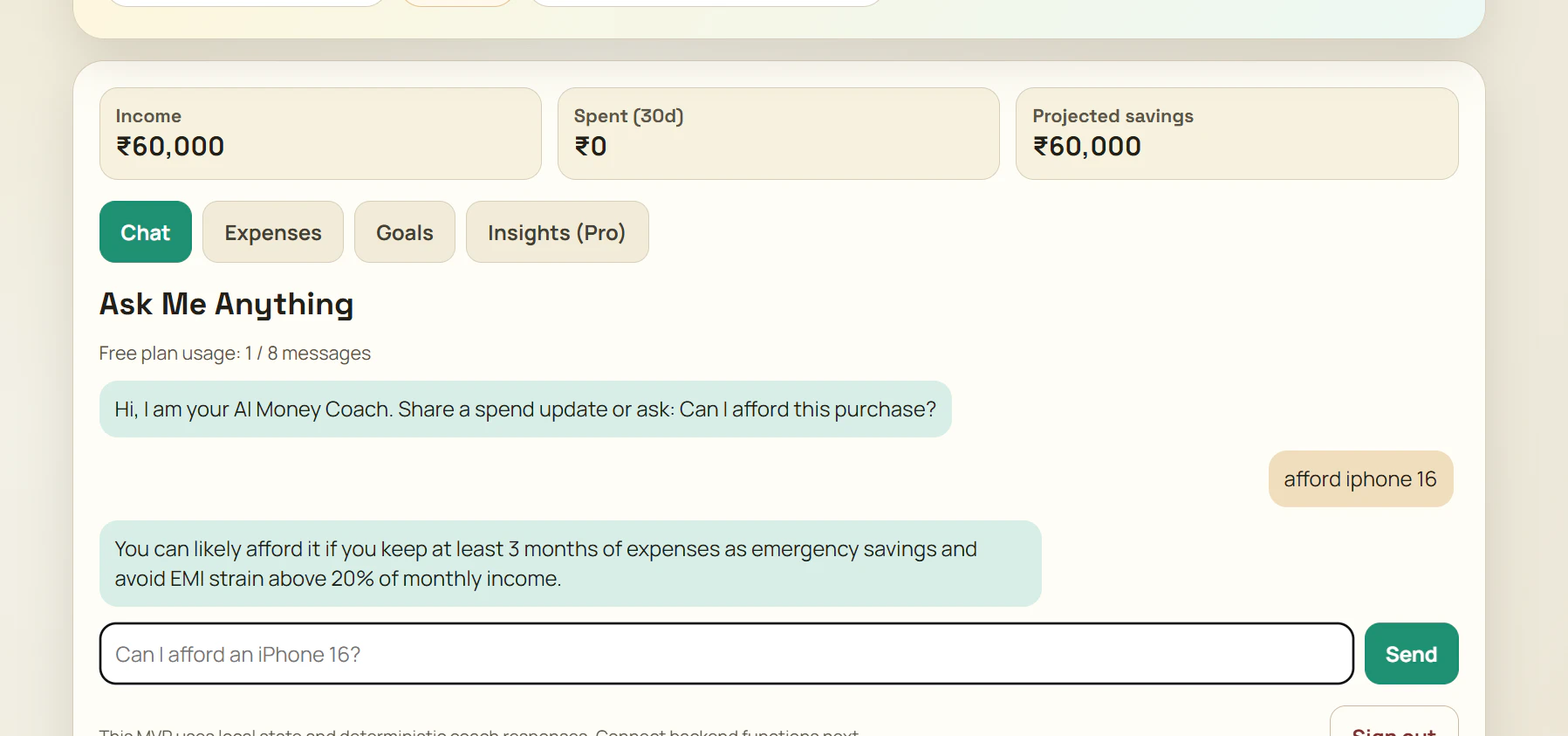 FinCoach AI is a chat-first personal finance coach built for India. ✅ Chat with AI about your fin...