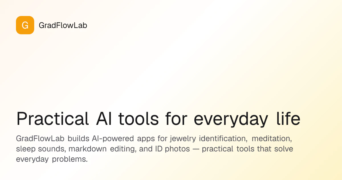 GradFlowLab builds apps that solve real problems — identify jewelry from photos, write in markdow...