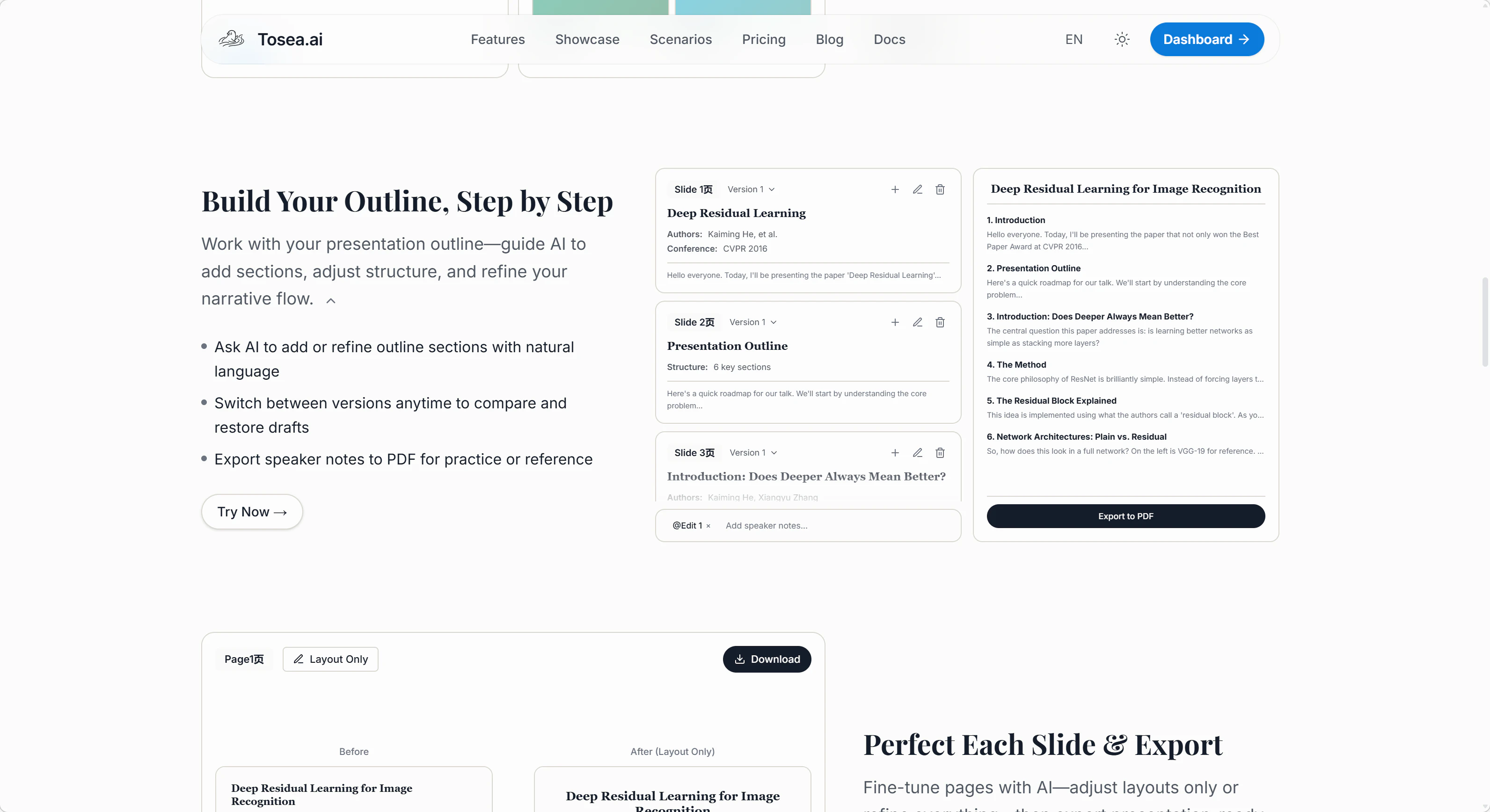Tosea.ai is the most powerful AI professional slide generator. It converts financial statements, ...