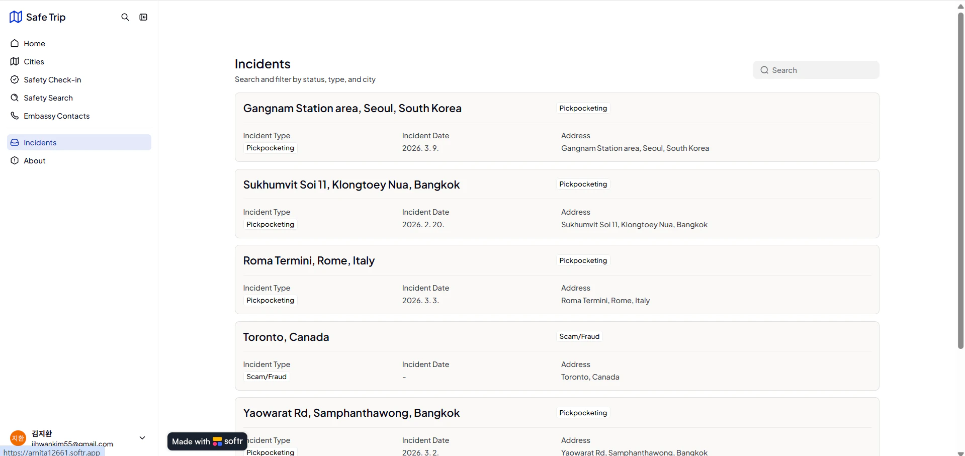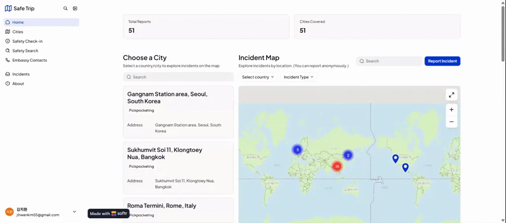 SafeTrip is a free platform where travelers report safety incidents like theft, scams, and pickpo...