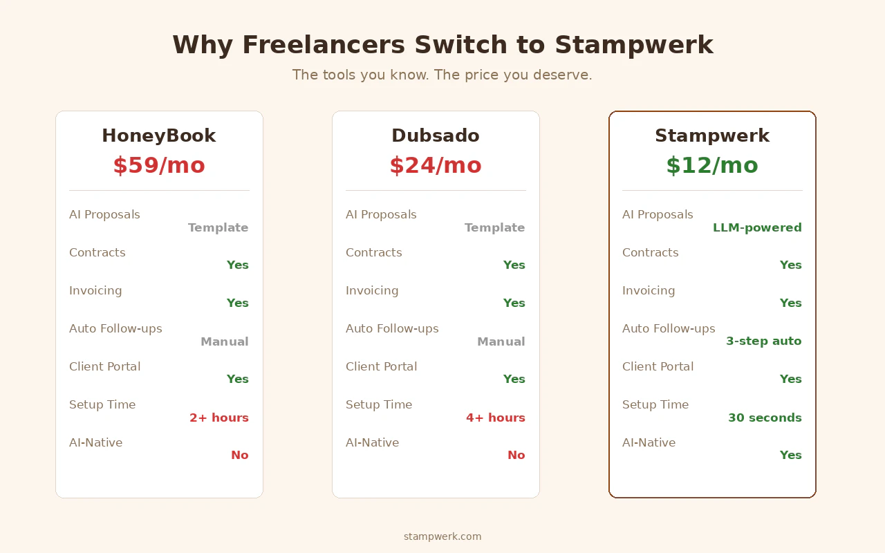 AI proposals + invoicing for freelancers at $12/mo