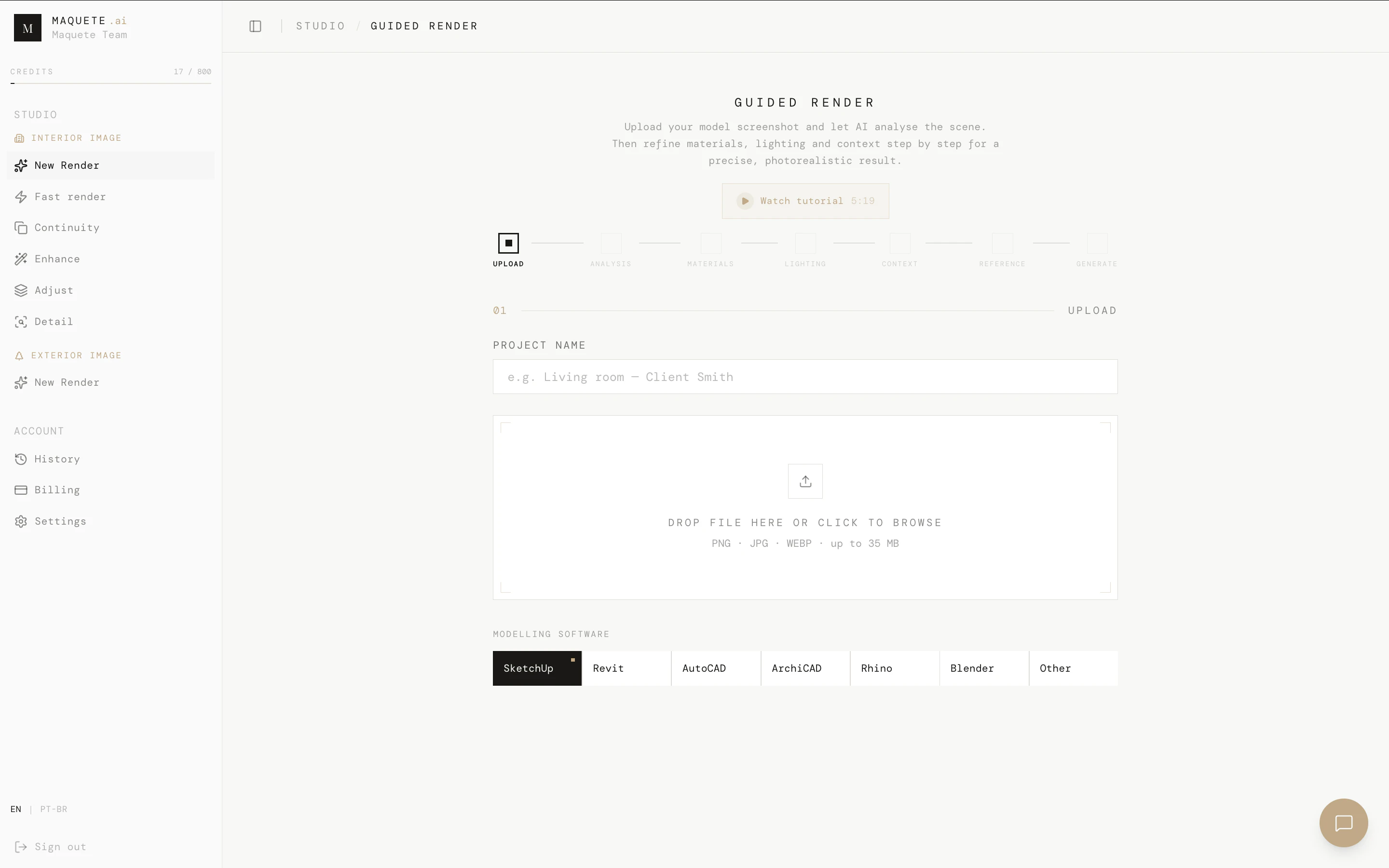 Upload a SketchUp screenshot, pick your lighting, get a photorealistic render. No V-Ray, no plugi...