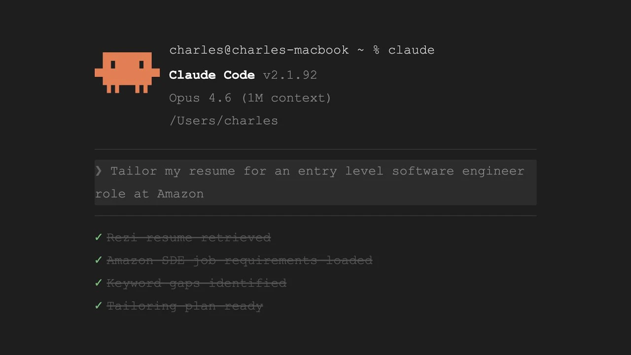 Connect your Rezi account to AI tools like Claude, Codex, and Gemini using MCP. Tailor resumes to...