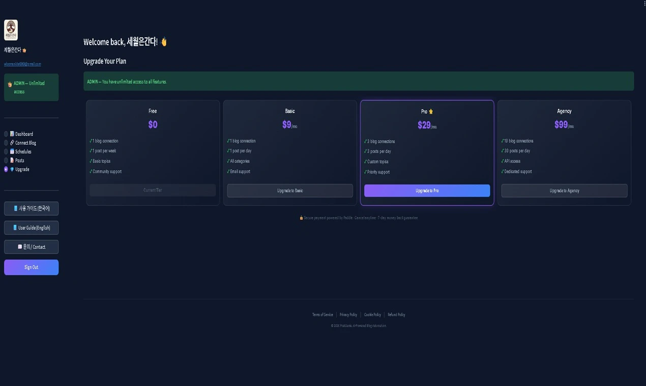 PostGenie is an AI blog automation platform. Connect your blog, pick topics, and Claude AI writes...