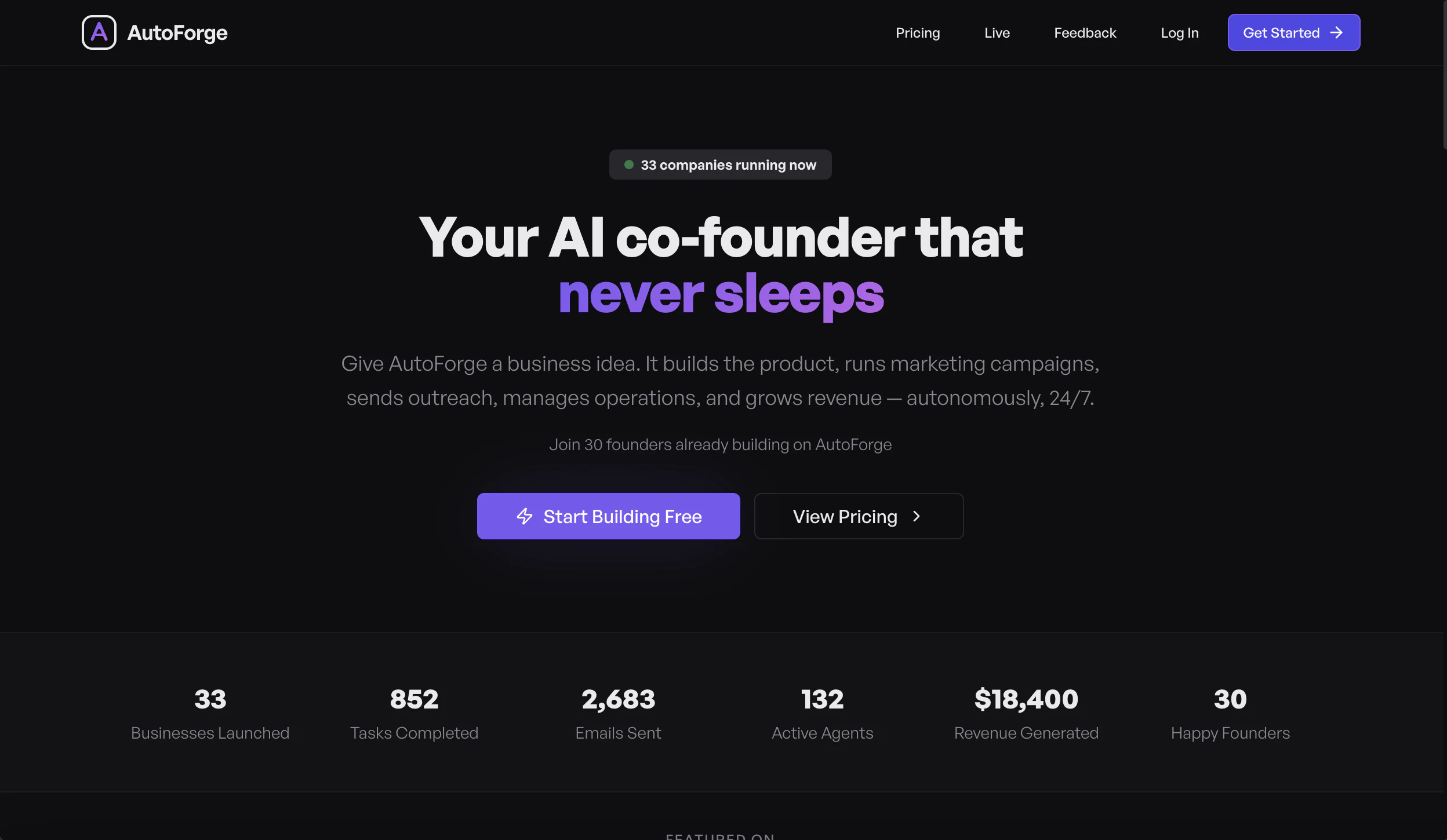 4 AI agents — CEO, CTO, CMO, COO — autonomously build, market, and operate your business every ni...