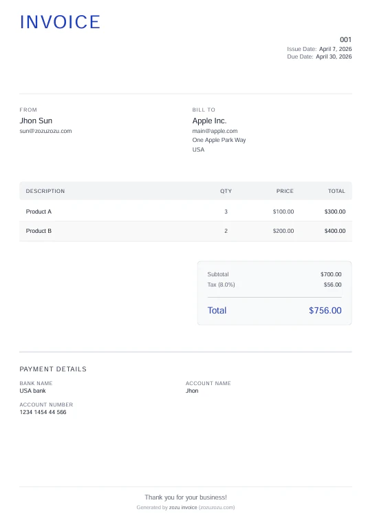 Create professional invoices in seconds with AI
