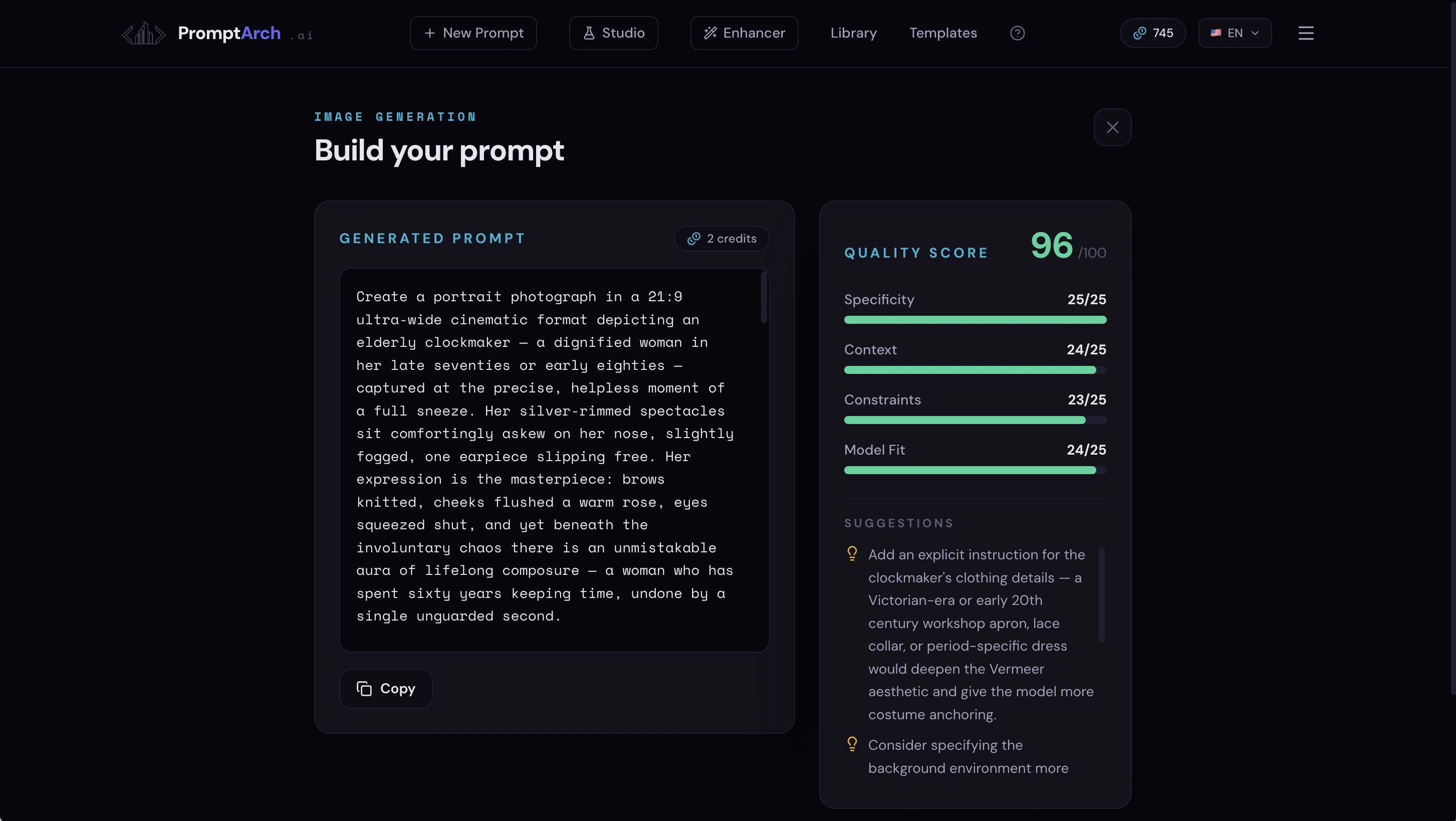 Guided prompt & context engineering tool, AI quality scored.