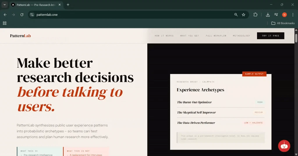 PatternLab synthesizes public user experience signals into probabilistic archetypes and testable ...