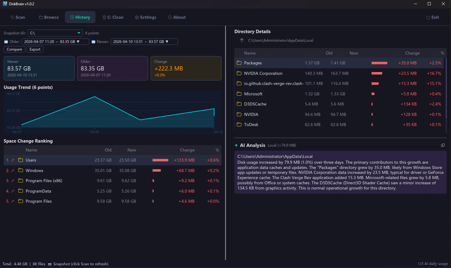 Reclaim your C drive with DiskBrain: a Rust-powered engine that scans in seconds and visualizes f...