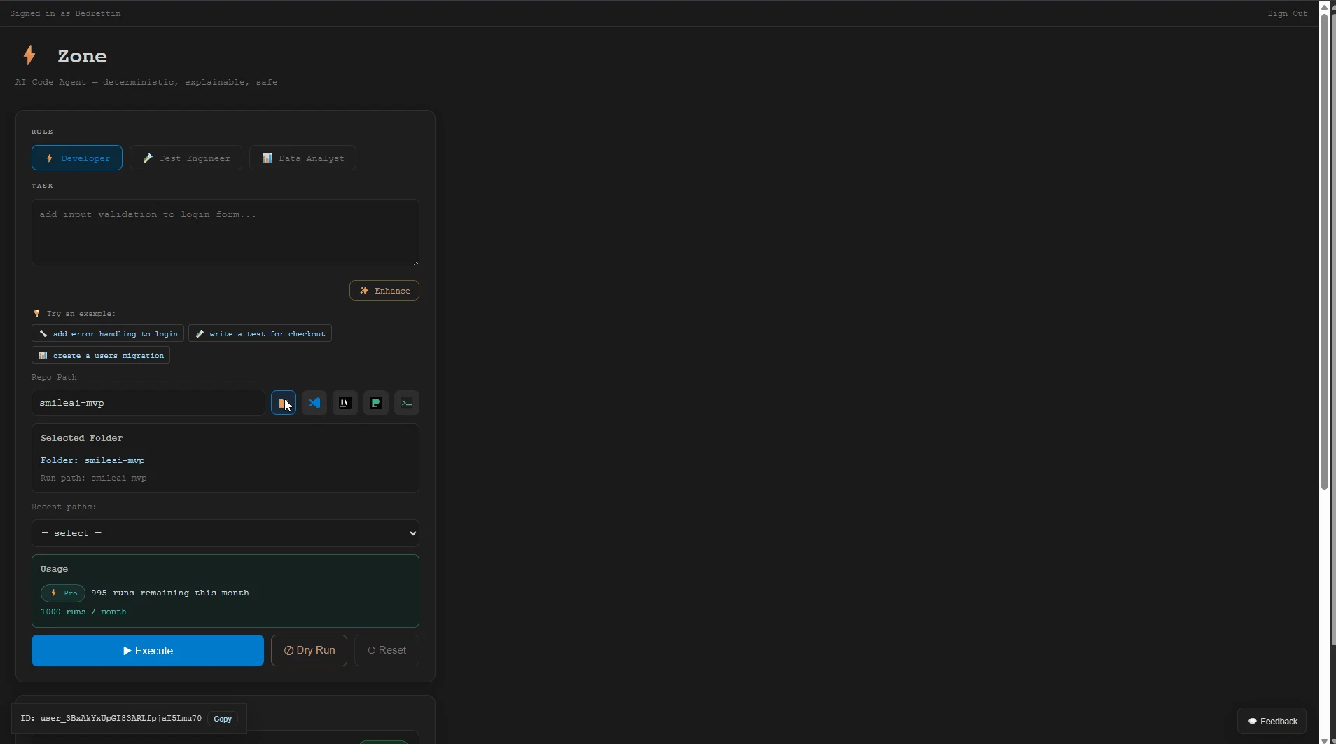 Zone reads your actual repo, generates code patches, and shows you a full diff with confidence sc...