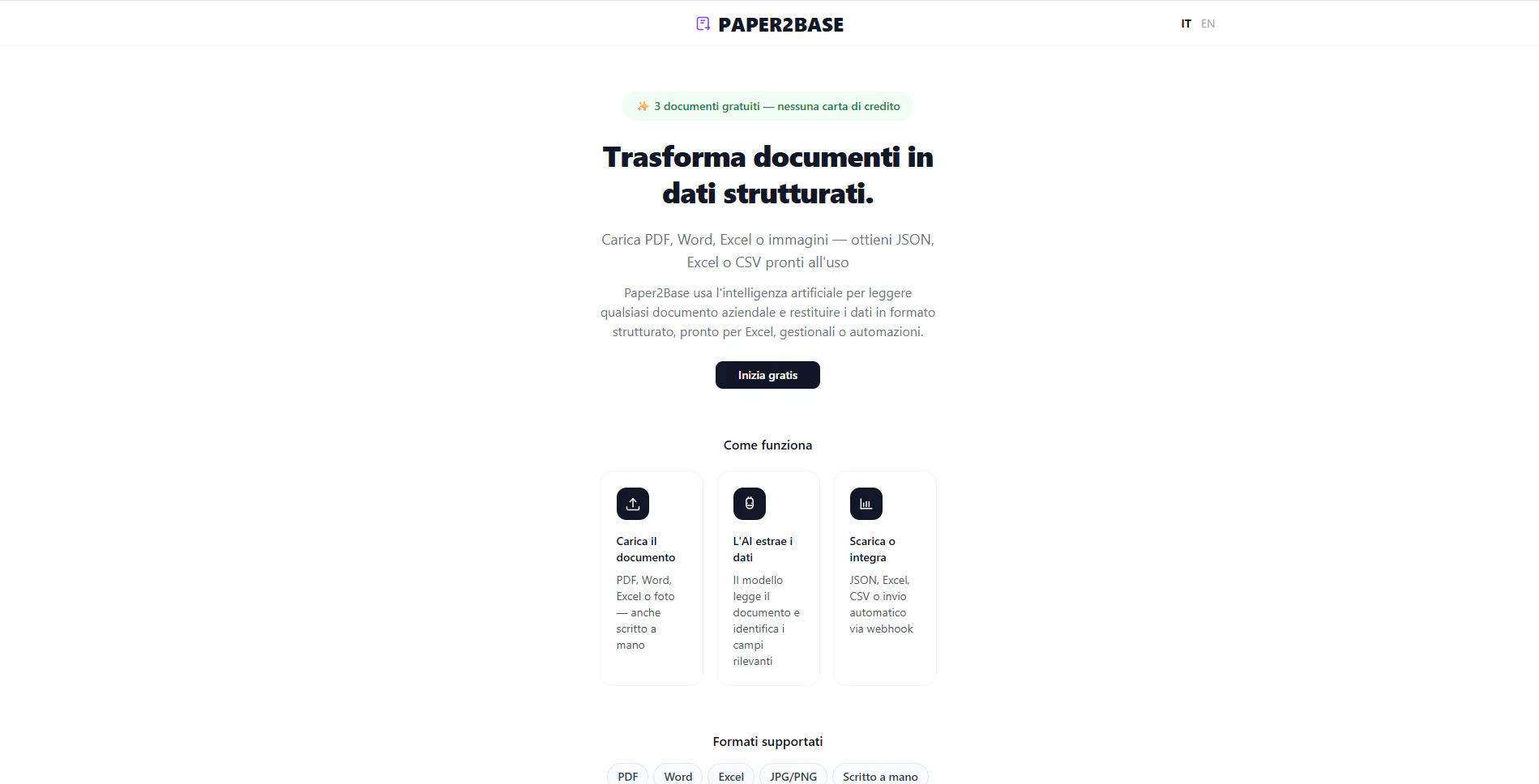Upload any PDF, Word, Excel or image and get structured JSON, Excel or CSV in seconds — powered b...
