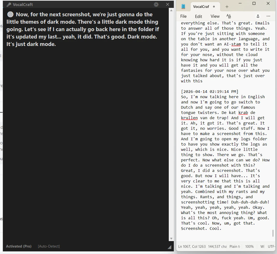 VocalCraft is a 100% offline + lifetime ownership Windows dictation app powered by Whisper AI. Pr...