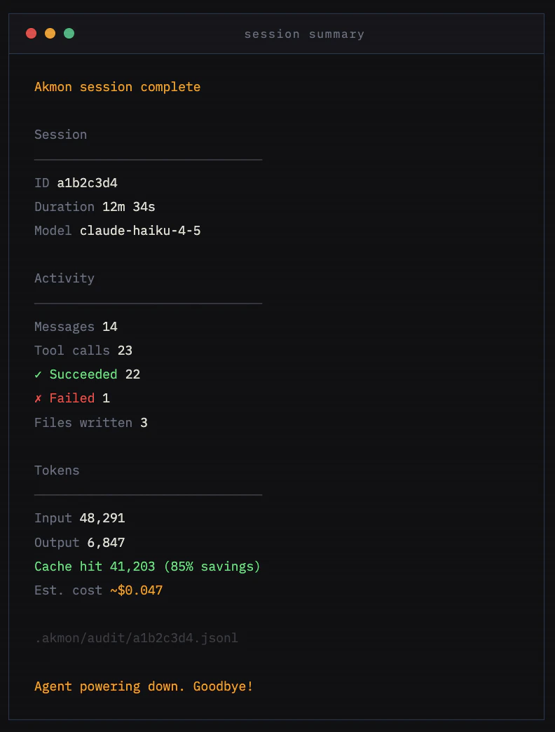 Akmon is a terminal-native AI coding agent built as a single Rust binary with no runtime dependen...
