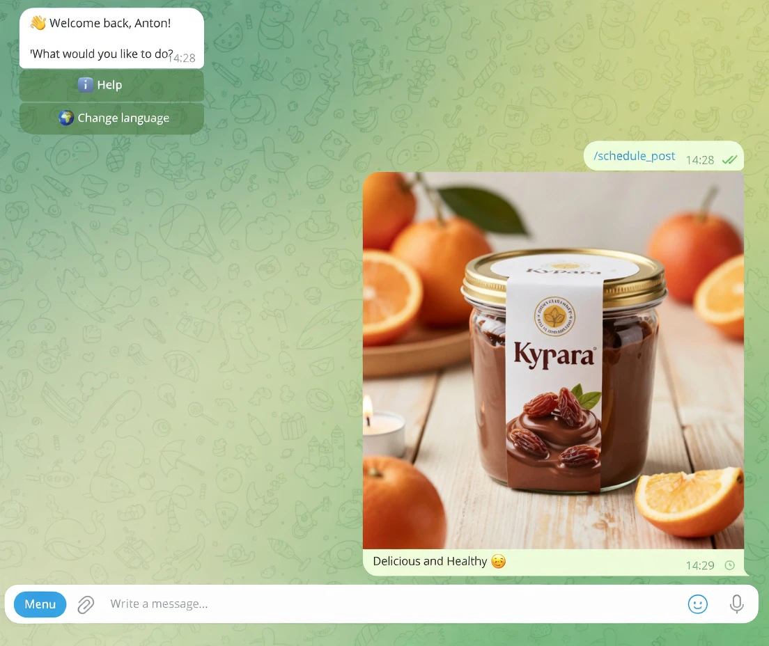 AI Telegram bot: generate text, images & videos + auto-post