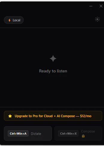 Hold a hotkey, speak, and text appears anywhere on your PC