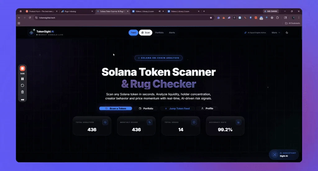 TokenSight AI helps you scan Solana tokens and avoid hidden risks. Get instant risk scores using ...