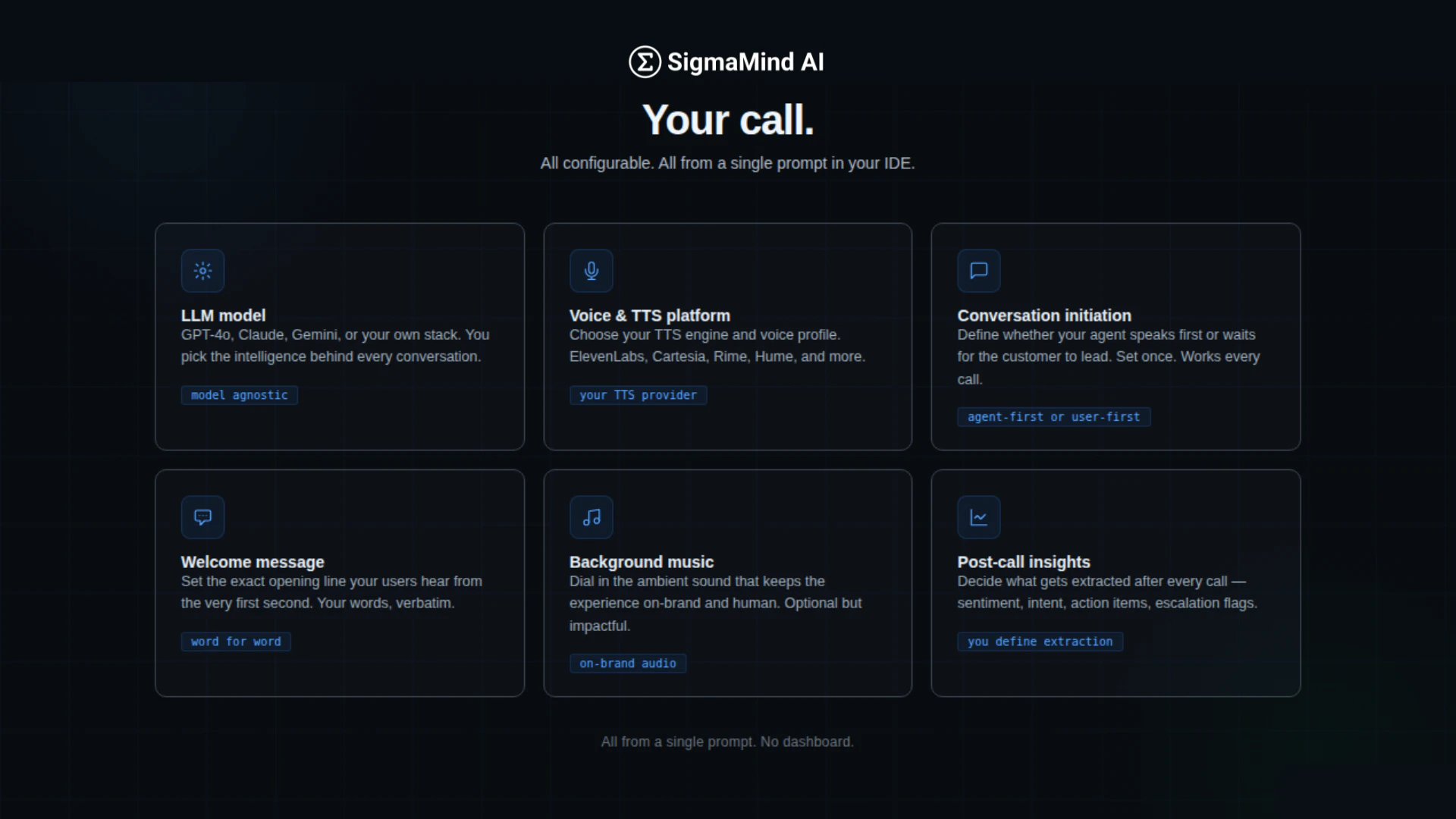 SigmaMind's MCP server exposes your entire voice AI stack as tools – agents, calls, campaigns, we...