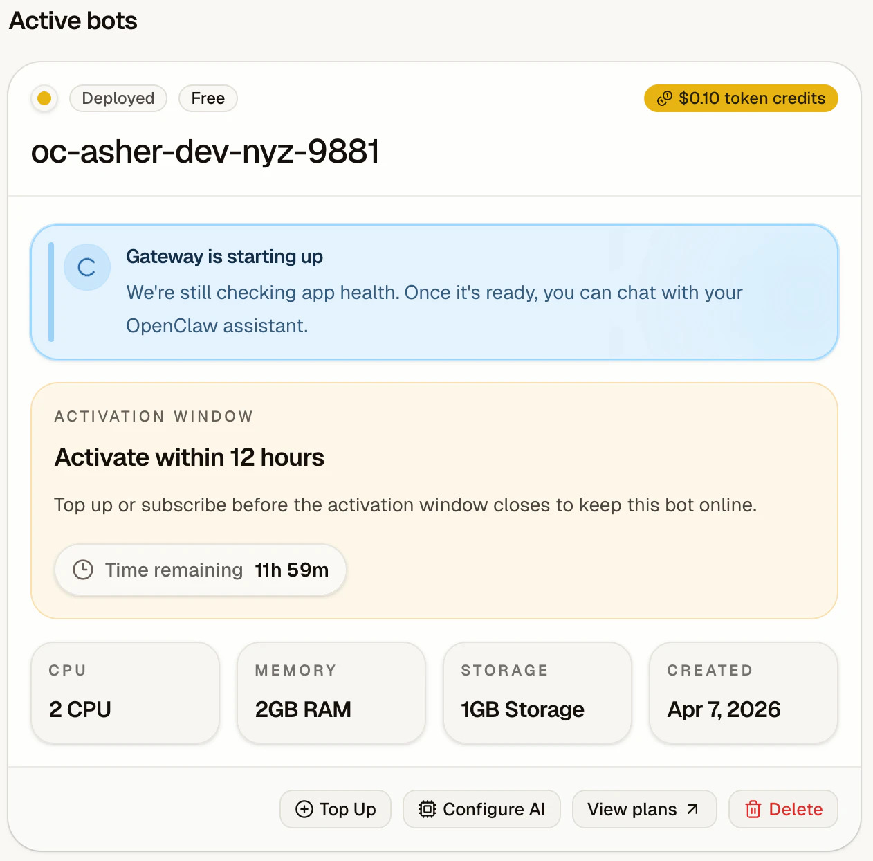 Deploy OpenClaw to the cloud in under 2 minutes. Connect with Telegram, WhatsApp, Discord & dozen...