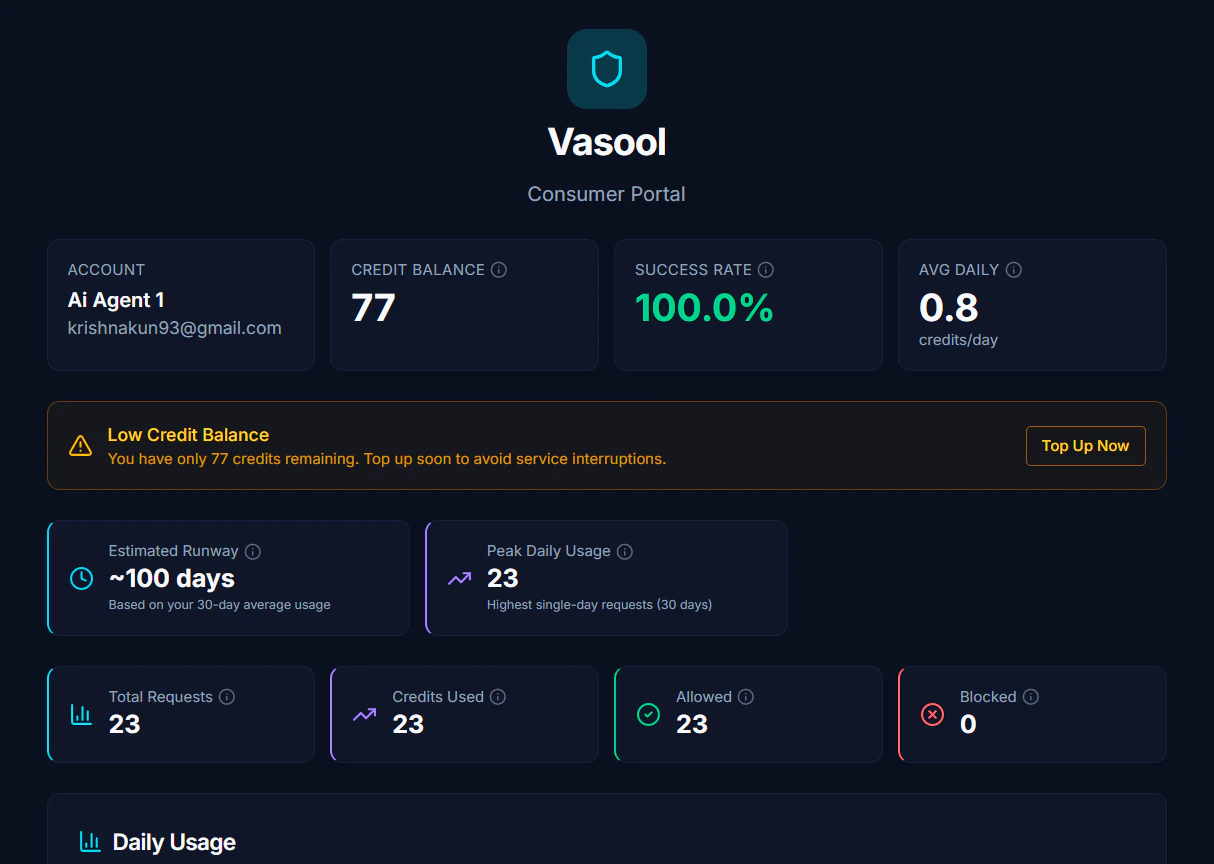 AI crawlers are scraping your content for free. Vasool detects 35+ AI bots & headless browsers us...