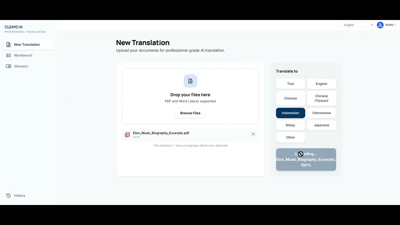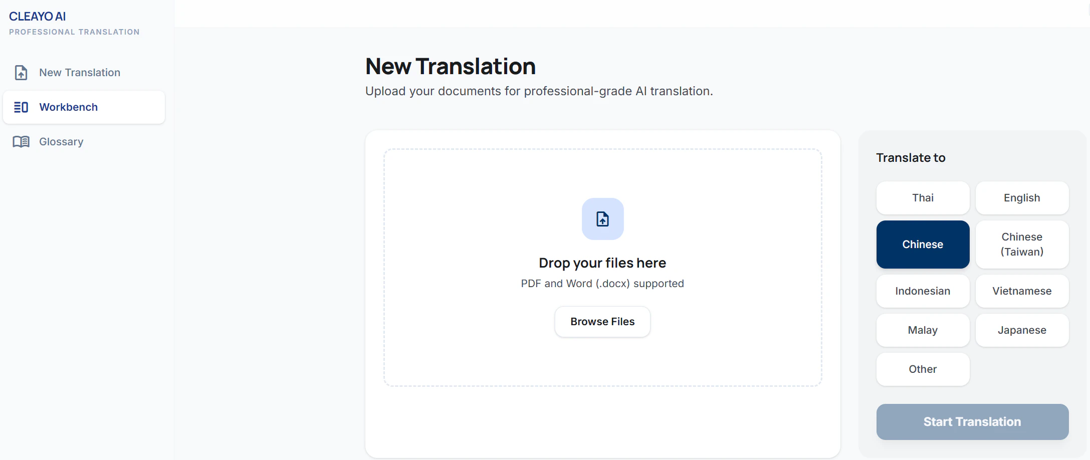CLEAYO translates entire PDF and Word documents - including scanned contracts - preserving tables...