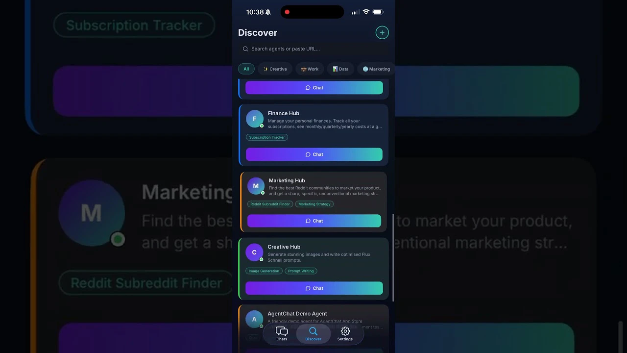 AgentChat Hub is a free native iOS app that connects to any AI agent using the A2A (Agent-to-Agen...