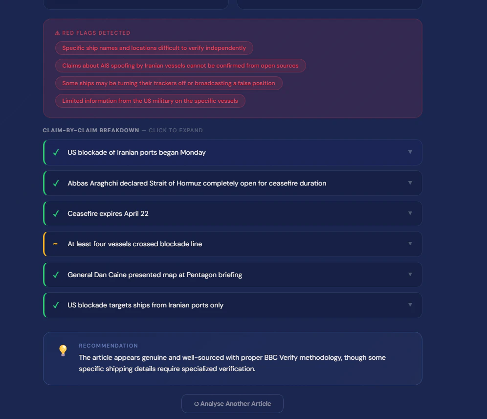 VerityCheck analyses any news article through 3 AI models simultaneously — Claude, Gemini, and Ll...