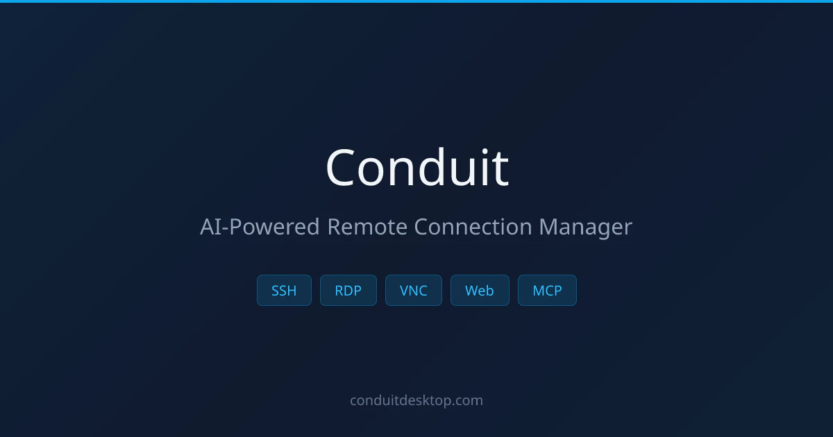 Conduit is an open-source cross-platform remote conection manager (SSH, RDP, VNC, web) with a bui...