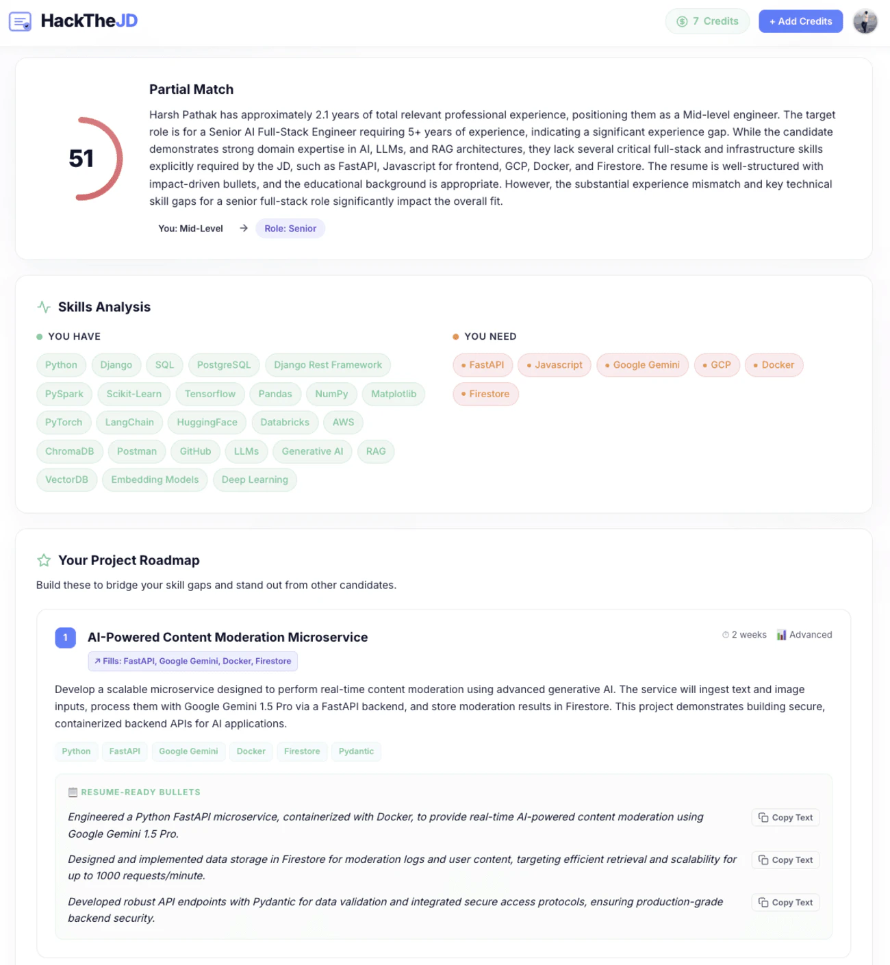 AI career coach: Bridge bullets & custom project roadmaps