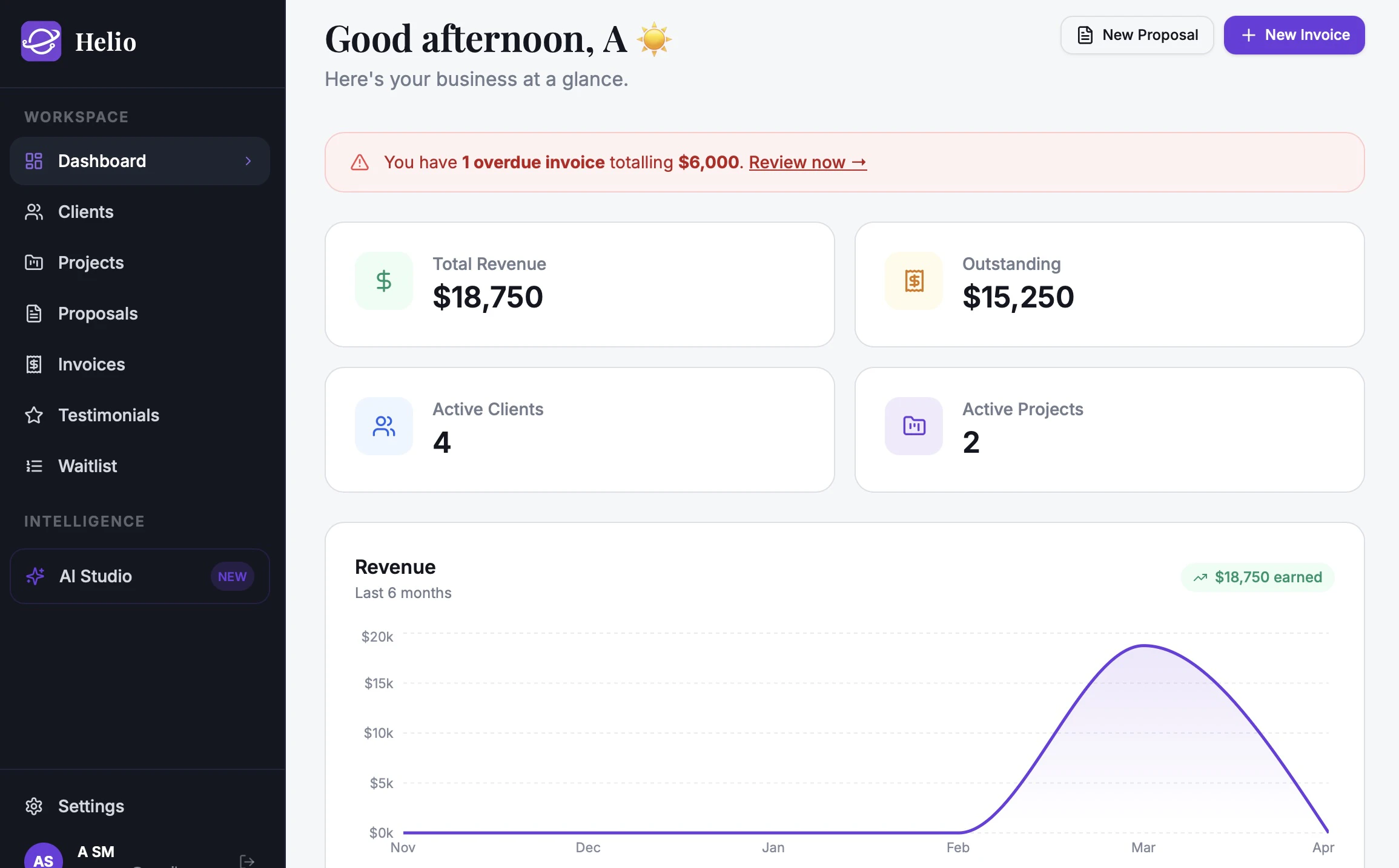 Helio is the all-in-one workspace for freelancers and micro-agencies — beautiful client managemen...