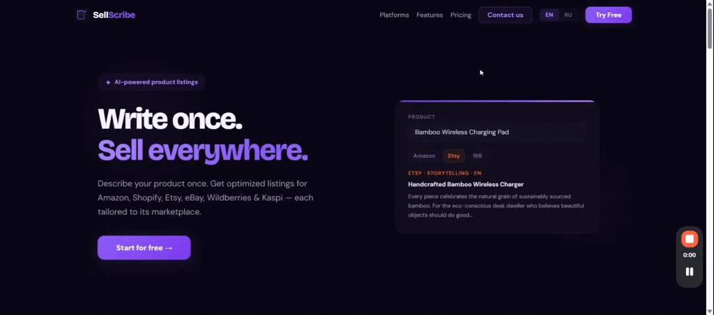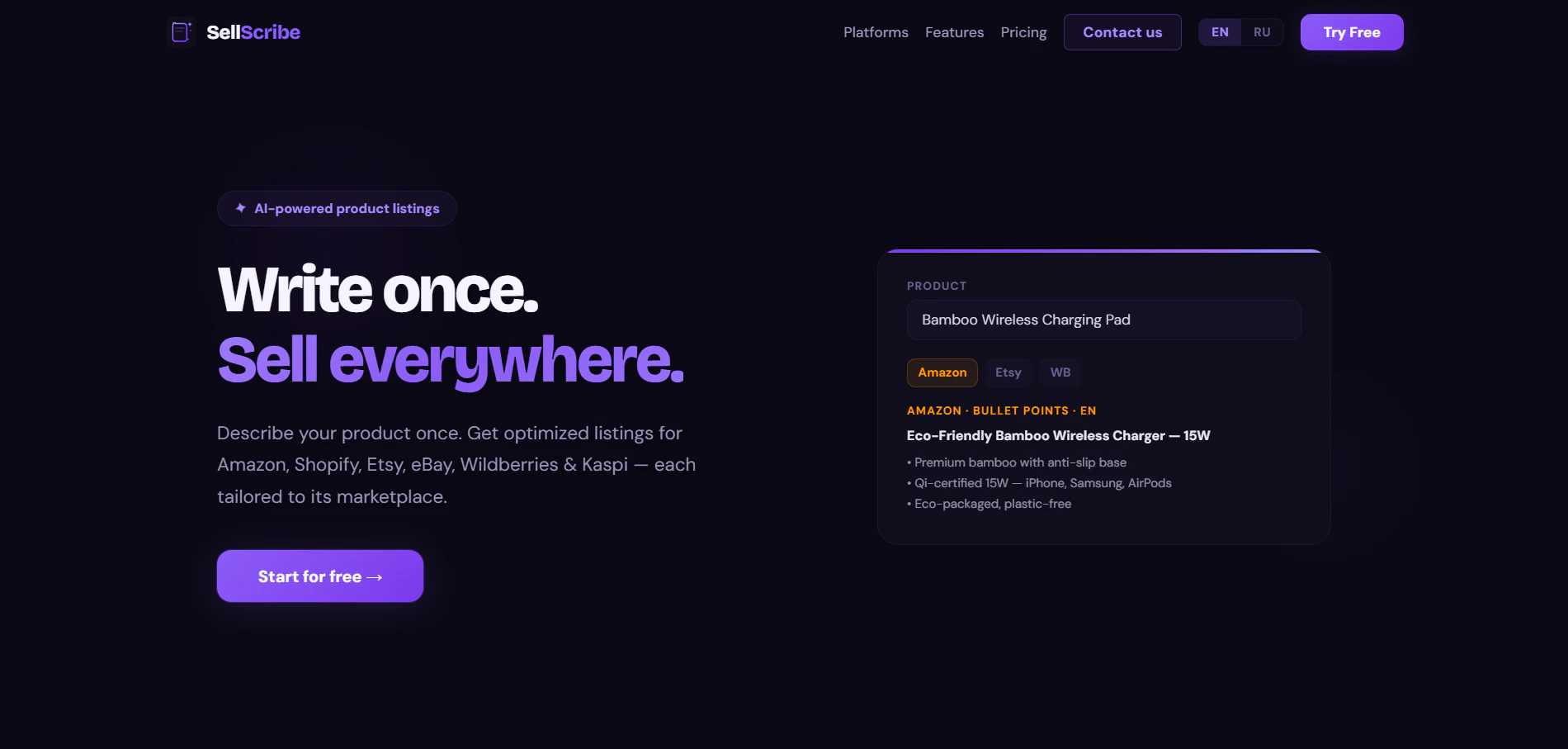 Rewriting the same product for every marketplace wastes hours. Amazon wants bullet points. Etsy w...