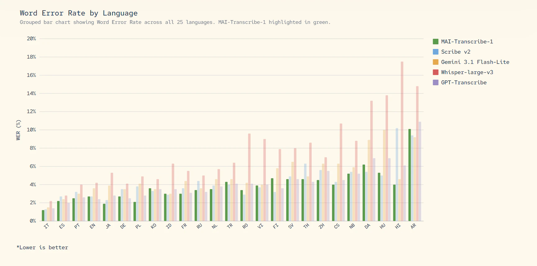 MAI-Transcribe-1 is Microsoft’s new multilingual speech-to-text model built for real-world audio....